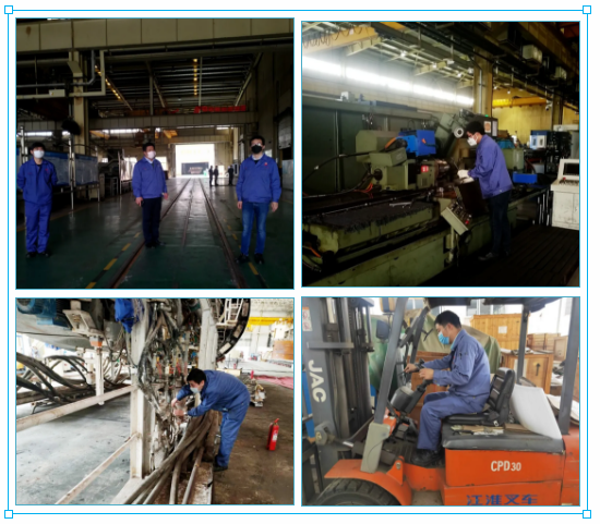 “防疫物資到位、人員排查到位、復(fù)工手續(xù)齊全。疫情防控關(guān)口已下沉到班組,生產(chǎn)正常推進(jìn)。” 經(jīng)過緊張有序的前期準(zhǔn)備工作,地處湖北武漢的中國兵器工業(yè)集團(tuán)武重集團(tuán)正式進(jìn)入復(fù)工復(fù)產(chǎn)狀態(tài)。 3月19日上午8時(shí),首批復(fù)工人員準(zhǔn)時(shí)抵達(dá)公司,戴著口罩,在接受體溫檢測、手部消毒后,進(jìn)入廠區(qū)。 提前謀劃 打好“雙戰(zhàn)役” 3月13日以來,武重集團(tuán)先后召開公司黨委會議、董事長辦公會,傳達(dá)學(xué)習(xí)習(xí)近平總書記考察湖北新冠肺炎疫情防控工作時(shí)的重要講話精神,樹信心、鼓干勁、戰(zhàn)疫情、促發(fā)展,動員全公司上下緊盯全年各項(xiàng)目標(biāo)任務(wù),迎難而上、奮力拼搏,努力把疫情耽誤的時(shí)間“搶”回來,做到貫徹落實(shí)習(xí)近平總書記重要講話精神更加到位,統(tǒng)籌推進(jìn)疫情防控和企業(yè)發(fā)展更加有效。 為切實(shí)做好公司復(fù)工復(fù)產(chǎn)前后疫情防控,維護(hù)生產(chǎn)經(jīng)營正常運(yùn)行,按照復(fù)工有關(guān)要求,公司疫情防控領(lǐng)導(dǎo)小組組織制定了《復(fù)工復(fù)產(chǎn)防控新型冠狀病毒肺炎疫情工作方案》、《疫情防控應(yīng)急預(yù)案》以及疫情期間安全生產(chǎn)、員工管理、進(jìn)出廠區(qū)管理和通勤車、食堂、消毒等后勤保障工作細(xì)則等文件,配備了口罩、防護(hù)服、測溫槍、消毒水等防護(hù)用品及應(yīng)急物資,設(shè)置了應(yīng)急隔離區(qū),確保復(fù)工后的防疫所需。 周密部署 筑牢“防疫墻” “復(fù)工任務(wù)雖急,人員安全更重,必須把好人員進(jìn)場第一關(guān)。”在人員進(jìn)場管控上,武重集團(tuán)建立了這樣一條“硬核規(guī)定”:員工必須每天通過企業(yè)微信提交體溫信息,建立員工健康檔案,筑牢復(fù)工“防疫墻”。 在接到復(fù)工批復(fù)后,公司領(lǐng)導(dǎo)多次帶隊(duì)深入生產(chǎn)現(xiàn)場,檢查疫情防控工作和復(fù)工前的各項(xiàng)準(zhǔn)備工作,協(xié)調(diào)解決項(xiàng)目在復(fù)工過程中存在的問題,要求通過優(yōu)化產(chǎn)出計(jì)劃拉動復(fù)工復(fù)產(chǎn)體系,使公司上下盡快進(jìn)入達(dá)產(chǎn)達(dá)效狀態(tài)。3月17日到18日,各單位按照各項(xiàng)預(yù)案措施針對安全、設(shè)備、就餐、消毒、乘車、住宿、應(yīng)急體系演練、職工隔離工作等方面進(jìn)行全面排查,全力確保疫情防控精準(zhǔn)到位、安全生產(chǎn)有序推進(jìn)。 公司領(lǐng)導(dǎo)到生產(chǎn)現(xiàn)場、職工食堂察看復(fù)工復(fù)產(chǎn)各項(xiàng)準(zhǔn)備工作 做實(shí)做細(xì) 當(dāng)好“排頭兵” 新冠肺炎疫情發(fā)生以來,武重集團(tuán)迅速投身戰(zhàn)“疫”,充分利用武重集團(tuán)“大國重器”技術(shù)及加工能力優(yōu)勢,多次為火神山醫(yī)院、雷神山醫(yī)院建設(shè)、防疫物資加工等急難險(xiǎn)重任務(wù)貢獻(xiàn)力量,展示了武重人“召之即來,來之能戰(zhàn),戰(zhàn)之必勝”的優(yōu)良作風(fēng)。 隨著復(fù)工的啟動,武重集團(tuán)生產(chǎn)指揮系統(tǒng)迅速重新編制了年度施工進(jìn)度計(jì)劃,將延誤工期時(shí)間分解到各個(gè)施工階段,保證施工節(jié)點(diǎn)任務(wù)完成,多個(gè)重大項(xiàng)目將從“暫?!蹦J角袚Q為“快進(jìn)”模式,加快復(fù)工復(fù)產(chǎn)。 進(jìn)入工作區(qū)前進(jìn)行體溫測量及消毒 復(fù)工單位開展班前會 各單位復(fù)工有序進(jìn)行 食堂用餐避免扎堆 武重集團(tuán)將以鏗鏘的步伐、昂揚(yáng)的斗志,聚焦重點(diǎn)項(xiàng)目,全力以赴做好復(fù)工復(fù)產(chǎn)各項(xiàng)工作,繼續(xù)發(fā)揮好大國重器、央企頂梁柱作用,奮力奪取疫情防控和企業(yè)發(fā)展雙勝利。(武重集團(tuán)) |