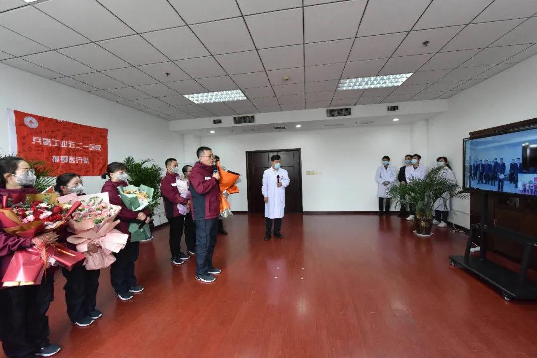 焦開河指出,面對(duì)突如其來(lái)的新冠肺炎疫情的嚴(yán)峻考驗(yàn),521醫(yī)院7名援鄂醫(yī)療隊(duì)隊(duì)員堅(jiān)決響應(yīng)習(xí)近平總書記和黨中央號(hào)召,肩負(fù)集團(tuán)公司黨組和全集團(tuán)23萬(wàn)干部職工的重托,聞令而動(dòng)、挺身而出,奔赴抗擊疫情第一線。援鄂期間,杭博、郭苓、緱豪兵、楊嬌4位同志,充分發(fā)揮了共產(chǎn)黨員的先鋒模范作用,呂戈、侯永生、曹利娜3位同志火線入黨,不辱使命、不負(fù)重托,出色完成了任務(wù)。7位同志的辛勤付出,充分體現(xiàn)了“把一切獻(xiàn)給黨”的人民兵工精神,體現(xiàn)了大愛(ài)無(wú)疆的醫(yī)者仁心,體現(xiàn)了集團(tuán)公司大國(guó)頂梁柱的責(zé)任擔(dān)當(dāng),為黨旗爭(zhēng)了光,為集團(tuán)公司添了彩。全集團(tuán)廣大干部職工要學(xué)習(xí)他們的先進(jìn)事跡,為奪取疫情防控和實(shí)現(xiàn)全年目標(biāo)任務(wù)的“雙勝利”不懈奮斗! 杭博、呂戈作了發(fā)言,感謝集團(tuán)公司黨組的關(guān)心和支持,表示一定要發(fā)揚(yáng)優(yōu)良作風(fēng),立足本職、努力工作,為兵器工業(yè)的發(fā)展做出更大貢獻(xiàn)。