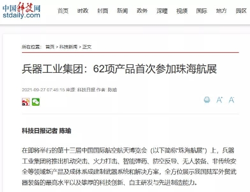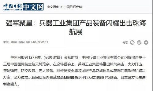 9月28日-10月3日,第十三屆中國國際航空航天博覽會在廣東珠海舉行,中國兵器工業(yè)集團有限公司作為主辦單位閃耀亮相,推出裝甲突擊、火力打擊、智能彈藥、防空反導、無人裝備、非傳統(tǒng)安全、軍工軍技合作等領域新產(chǎn)品及成體系成建制武器系統(tǒng)和解決方案,全方位展示我國陸軍外貿(mào)武器裝備的最高水平以及雄厚的科技創(chuàng)新、自主研發(fā)與先進制造能力,受到廣泛關注。