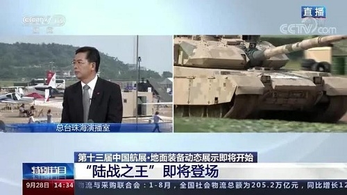 央視《新聞聯(lián)播》報道第十三屆中國航展,著重介紹了VT4主戰(zhàn)坦克,關注航展公眾日中國兵器館情況。9月28日下午央視《新聞直播間》航展特別節(jié)目《藍天盛會》邀請集團公司訪談嘉賓做客直播間對中國兵器館兵器工業(yè)集團展區(qū)等進行1小時直播;9月28日下午、10月2日下午分別對地面裝備動態(tài)表演進行兩場直播。央視《朝聞天下》、《新聞直播間》、《共同關注》、《天下財經(jīng)》、《軍事報道》、《正午國防軍事》、《軍武零距離》等相繼推出集團公司參展裝備的報道。