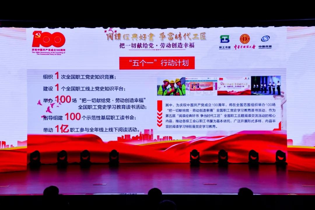 4月23日是第26個(gè)世界讀書日。在中華全國總工會指導(dǎo)下,全國工會職工書屋建設(shè)領(lǐng)導(dǎo)小組和中國兵器工業(yè)集團(tuán)有限公司共同舉辦了第五屆“閱讀經(jīng)典好書 爭當(dāng)時(shí)代工匠”全國工會職工書屋主題閱讀交流活動暨“把一切獻(xiàn)給黨·勞動創(chuàng)造幸?!比珖毠h史學(xué)習(xí)教育讀書活動啟動儀式。中華全國總工會黨組書記、副主席、書記處第一書記陳剛出席活動并講話,中國兵器工業(yè)集團(tuán)有限公司黨組書記、董事長焦開河致辭。陳剛向焦開河傳授活動火炬。全國總工會黨組成員、經(jīng)費(fèi)審查委員會主任、全國工會職工書屋建設(shè)領(lǐng)導(dǎo)小組組長李曉鐘,全國總工會兼職副主席高鳳林,中國兵器工業(yè)集團(tuán)有限公司黨組副書記周艦出席活動。 陳剛指出,持續(xù)在廣大職工中開展主題閱讀活動,是工會組織貫徹落實(shí)習(xí)近平總書記關(guān)于“要提倡多讀書,建設(shè)書香社會,不斷提升人民思想境界、增強(qiáng)人民精神力量”要求的具體行動。今年是中國共產(chǎn)黨成立100周年,黨中央要求在全社會開展黨史、新中國史、改革開放史、社會主義發(fā)展史宣傳教育。深入開展職工主題閱讀活動,并將之與黨史學(xué)習(xí)教育緊密結(jié)合,對于教育廣大職工緊跟共產(chǎn)黨、奮進(jìn)新時(shí)代,充分調(diào)動起億萬職工投身全面建設(shè)社會主義現(xiàn)代化國家新征程的熱情,具有十分重要的意義和作用。 陳剛強(qiáng)調(diào),要聚焦思想政治引領(lǐng),深入開展職工閱讀活動,與開展“中國夢·勞動美--永遠(yuǎn)跟黨走 奮進(jìn)新征程”主題教育活動有機(jī)結(jié)合,引導(dǎo)廣大職工堅(jiān)定不移聽黨話、跟黨走。要把開展職工閱讀活動作為深化產(chǎn)業(yè)工人隊(duì)伍建設(shè)改革、提高職工整體素質(zhì)的重要途徑,培養(yǎng)職工良好的閱讀學(xué)習(xí)習(xí)慣,造就更多高素質(zhì)技術(shù)技能人才、能工巧匠、大國工匠。要聚合平臺陣地優(yōu)勢,推動職工書屋與工人文化宮、職工服務(wù)中心等工會服務(wù)場所及網(wǎng)絡(luò)平臺陣地融合發(fā)展,堅(jiān)持職工為本、貼近基層,突出公益性、服務(wù)性,實(shí)現(xiàn)創(chuàng)新升級,不斷激發(fā)活力,打造億萬職工文化家園。要引導(dǎo)職工求知善讀,博學(xué)精進(jìn),勵學(xué)敦行,共同譜寫勞動光榮的華彩樂章,匯聚團(tuán)結(jié)奮進(jìn)的強(qiáng)大正能量。