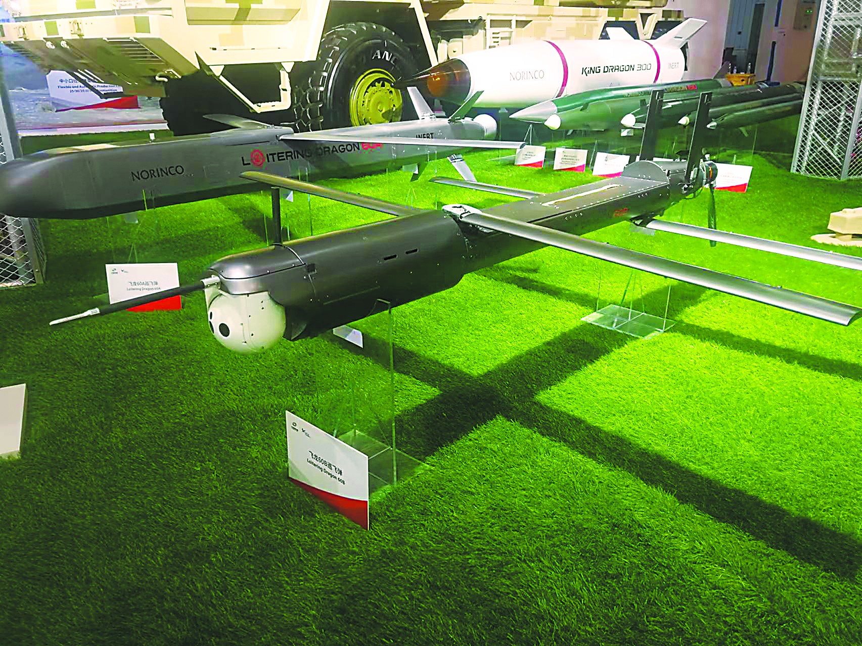 兵器工業(yè)集團(tuán)展出的SR-5遠(yuǎn)程火箭炮系統(tǒng)被稱(chēng)為“中國(guó)版‘海馬斯’”,它的特點(diǎn)之一就是能共架發(fā)射“飛龍-60”巡飛彈,從而引導(dǎo)火箭炮對(duì)數(shù)百公里外目標(biāo)的遠(yuǎn)程精確打擊。