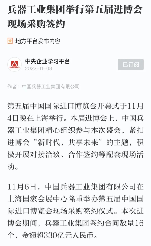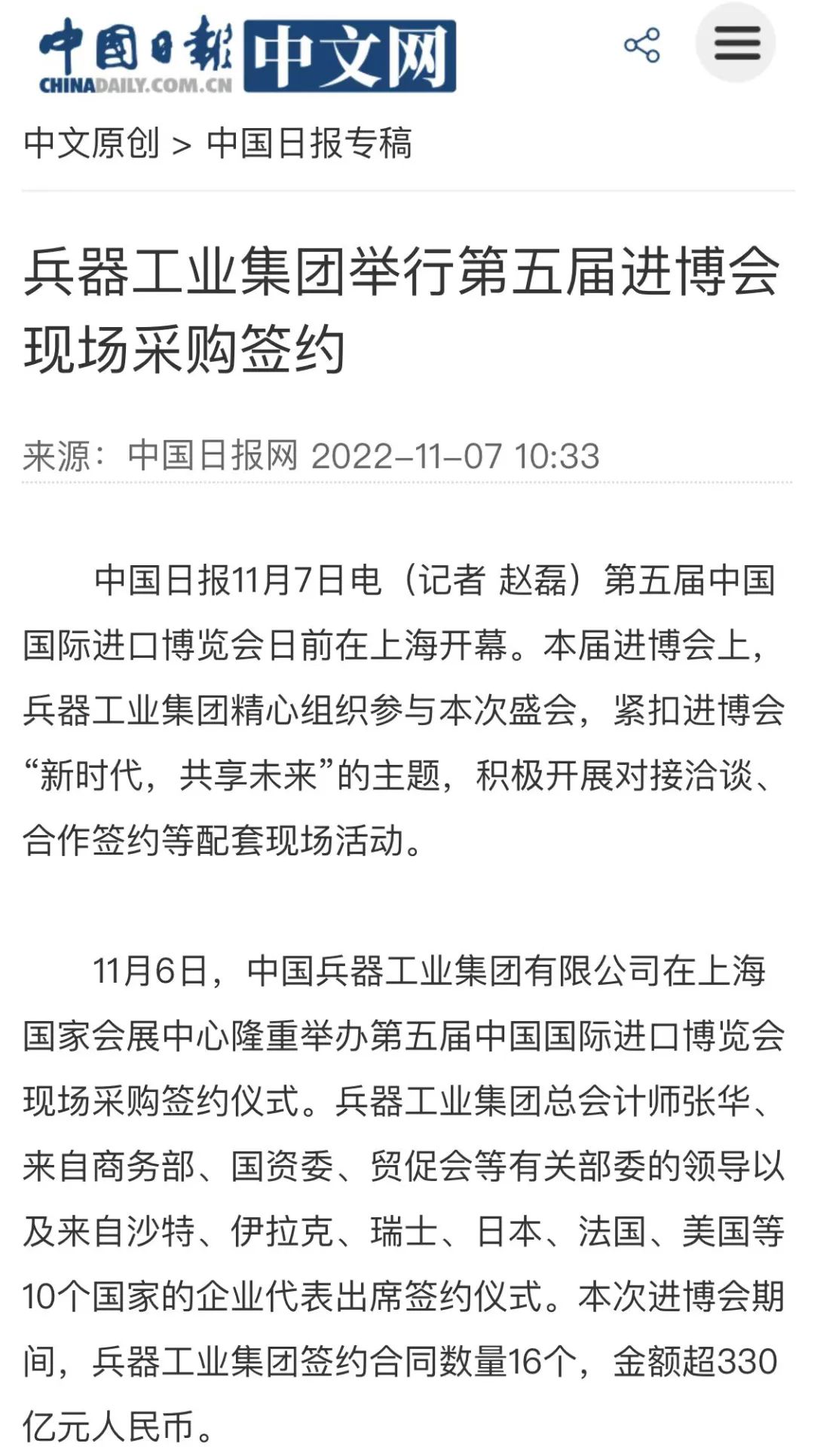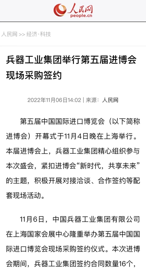 兵器工業(yè)集團(tuán)第五屆進(jìn)博會成果受到廣泛關(guān)注 |